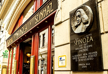Spinoza à Budapest. Elle illustre des relations probables avec la communauté juive d'Amsterdam.