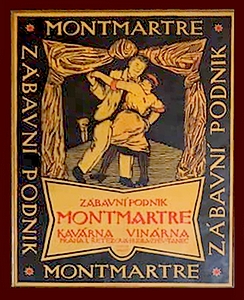 Dès la Belle Epoque, Prague avait un œil sur Paris et ses cabarets. Montmartre était à ce point la référence, qu'un des cafés les plus courus de la ville s'appelait... "Le café Montmartre". Certes le nom à l'époque n'avait rien d'original, on en trouvait partout dans le monde et jusqu'à Los Angeles, mais celui de Prague avait deux particularités : une piste de danse et être le haut lieu de rendez-vous des artistes et intellectuels. La piste de danse, avait été baptisée "L'Enfer" car sa décoration effectuée par V.H. Brunner représentait les sept péchés capitaux. La clientèle était très diverse : une bonne partie faisait partie de la classe la plus pauvre, une autre était composée d'artistes : le Café Montmartre devint très vite le lieu de rencontre des peintres du mouvement cubiste. Il y avait parmi les habitués, Gustav Meyrink qui atteint la notoriété avec "Le Golem" publié en 1915, Max Brod, qui publia les œuvres de Franz Kafka, lui aussi un habitué du café, et bien d'autres.