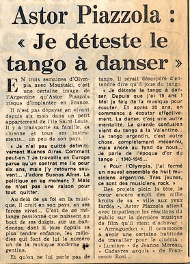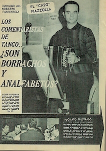 Astor Piazzolla, est certainement le musicien qui a le plus déchaîné les passions ! Génie pour les uns, traitre pour les autres, faisant ou non du "tango", créateur d'un nouveau style ou d'une nouvelle musique, longtemps partisans et détracteurs se sont affrontés, surtout en sa terre natale et chez les danseurs. Aujourd'hui les passions sont retombées et son génie est reconnu .