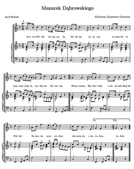 L'hymne national Polonais, est d'ailleurs parmi ceux-ci, un des plus intéressants, car il réunit deux des principaux composants du tango : une marche (militaire ou de défilé) et une mazurka. Il a été écrit en 1797, peu de temps après la Marseillaise. Il a été d'abord le chant de guerre des polonais engagés dans les campagnes de Napoléon en Italie, avant de devenir l'hymne national de leur pays.