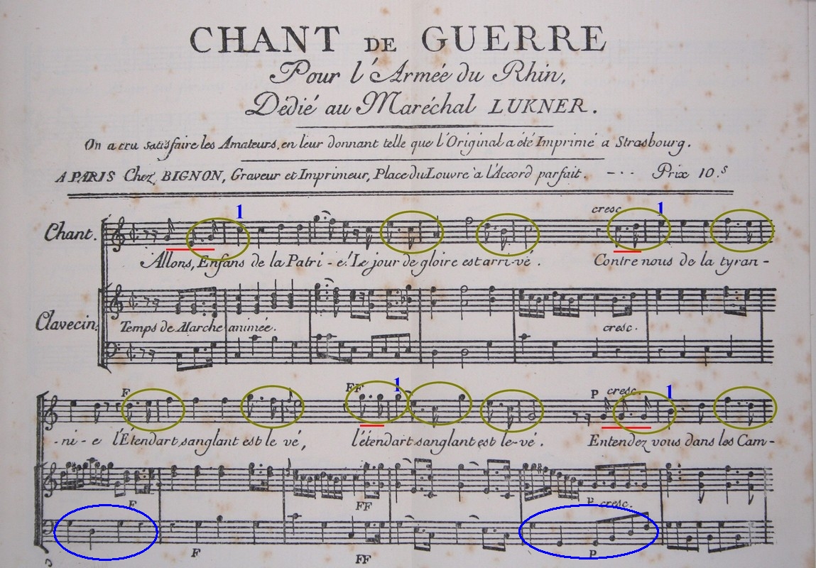 les partitions respectives de La Marseillaise, 1789 (partition originale), et